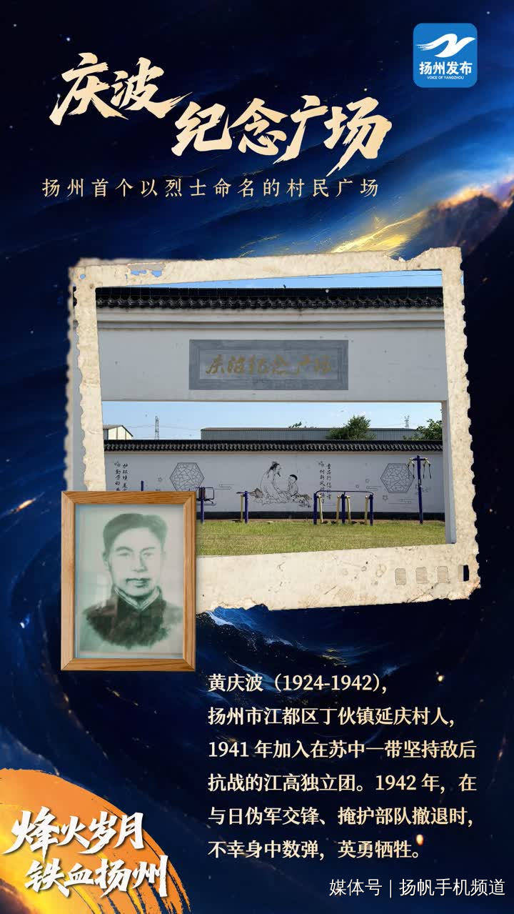 新中国成立后,地方政府修建了黄庆波烈士墓,后将其出生地命名为庆波大队。1983年,庆波大队更名为庆波村。1999年,庆波村与延寿村合并为现今的延庆村。2019年,在农业农村部专项资金支持下,延庆村将村内一块荒地进行规划改造,建成了庆波纪念广场。这是扬州市首个以烈士命名的村民广场,不仅极大地改善了村居环境,更让烈士的英雄事迹永流传。